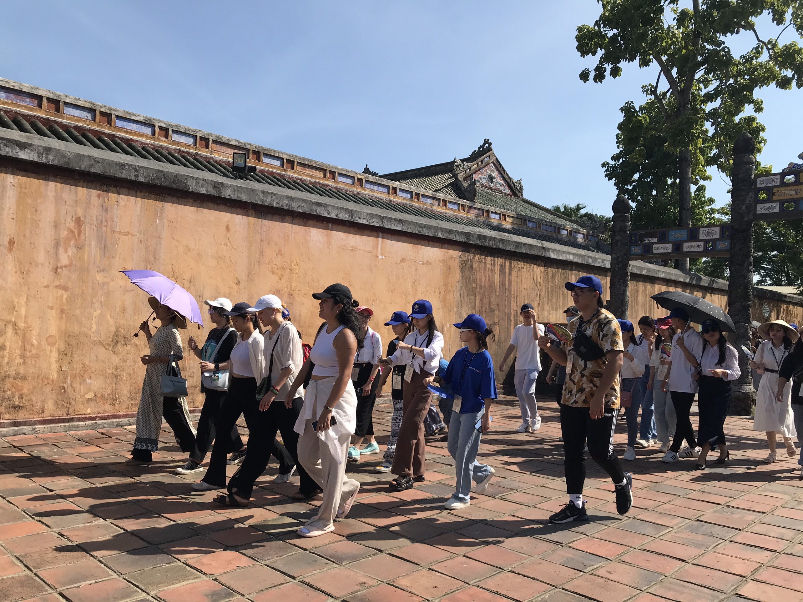 Đoàn trại hè Việt Nam 2022 chụp ảnh lưu niệm tại Đại nội Huế. |