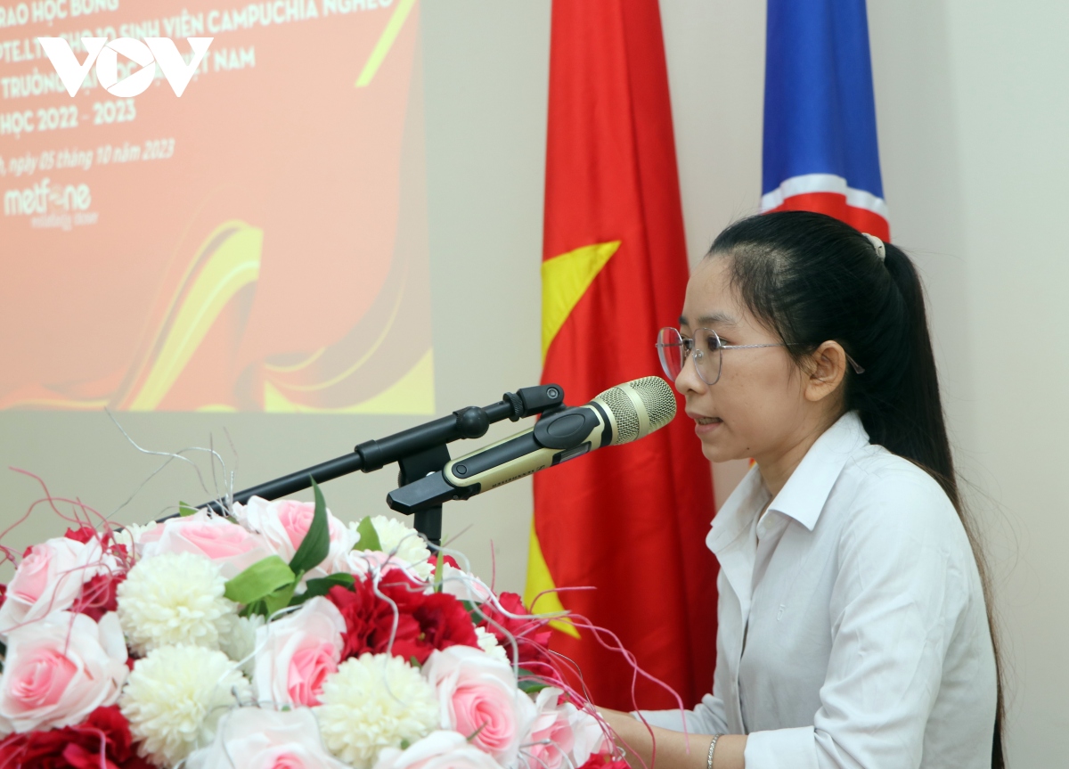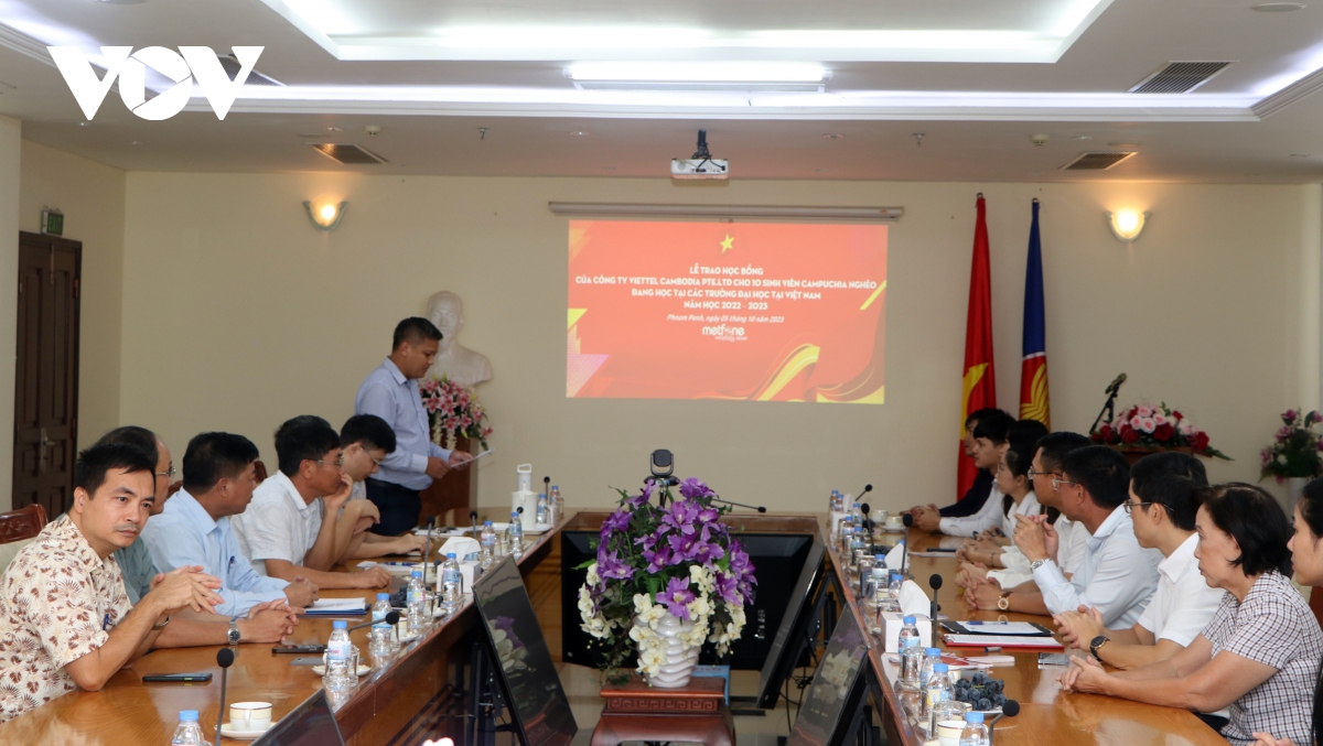 Các học bổng bằng tiền mặt, mỗi suất trị giá 1 nghìn 440 USD đã được đại diện Công ty Viettel Cambodia (Metfone) thuộc Tập đoàn Công nghiệp-Viễn thông Quân đội (Viettel ) trao tặng, để vinh danh 10 sinh viên Campuchia có hoàn cảnh khó khăn nhưng vẫn có thành tích và kết quả tốt trong quá trình theo học tại các trường đại học của Việt Nam, chủ yếu là Đại học Tôn Đức Thắng và Đại học Trà Vinh.