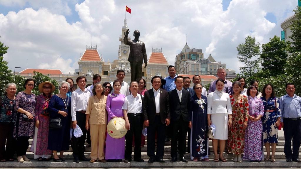 Đoàn Ủy ban về người Việt Nam ở nước ngoài thành phố Hồ Chí Minh đến dâng hoa tại tượng đài Chủ tịch Hồ Chí Minh.