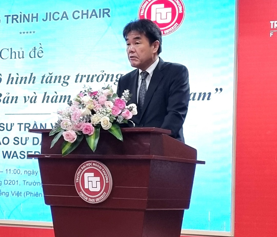 Ngày 24/07, Trường Đại học Ngoại thương, Cơ quan Hợp tác quốc tế Nhật Bản (JICA) đồng tổ chức chương trình bài giảng đặc biệt của GS. Trần Văn Thọ, Giáo sư danh dự Đại học Waseda với chủ đề “Đổi mới mô hình tăng trưởng: Kinh nghiệm của Nhật Bản và bài học đối với Việt Nam”.