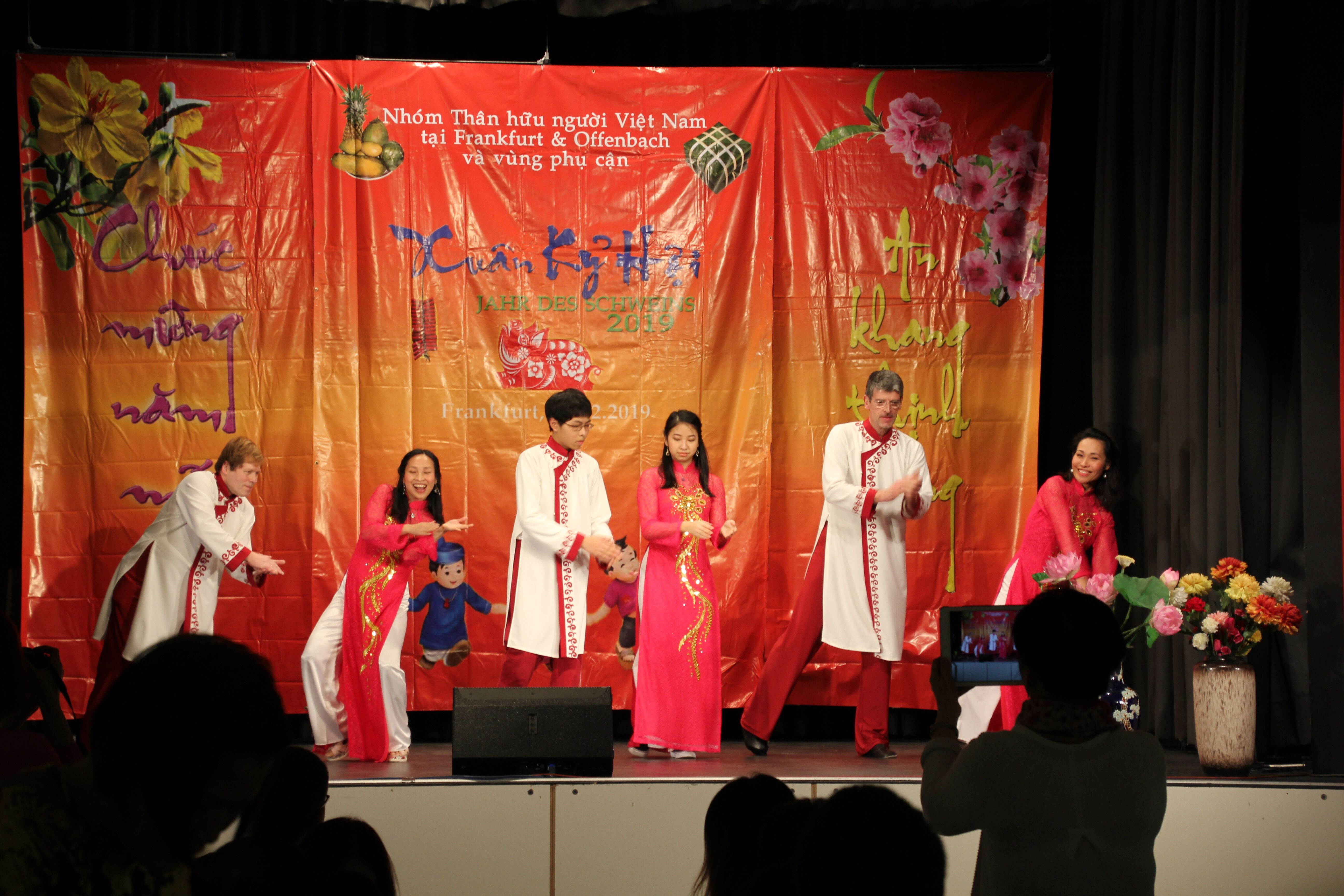 Đặc biệt các tiết mục văn nghệ còn có sự tham gia của các bạn người Đức, của những người nước ngoài. Tết Việt cùng những nét đẹp văn hóa ngày Tết đã và đang là nhịp cầu để giao lưu, chia sẻ.