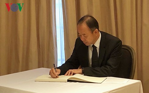 | Đại sứ Việt Nam tại Pháp Nguyễn Thiệp ghi sổ tang Chủ tịch nước Trần Đại Quang. |