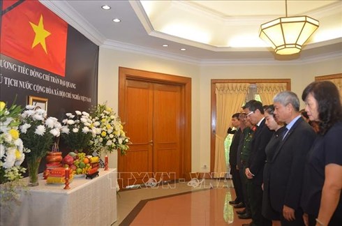 Trong sáng 26/9, Đại sứ quán Việt Nam tại LB Nga đã tổ chức trang trọng lễ viếng và mở sổ tang Chủ tịch nước Trần Đại Quang.Trong sổ tang, đại diện các cơ quan ngoại giao bày tỏ sự đau buồn và tiếc thương sâu sắc nhất với Đảng, Nhà nước và nhân dân Việt Nam trước sự ra đi của Chủ tịch nước Trần Đại Quang; khẳng định Chủ tịch nước Trần Đại Quang từ trần là một mất mát lớn của dân tộc Việt Nam cũng như bạn bè quốc tế; đánh giá cao những đóng góp của Chủ tịch nước Trần Đại Quang cho mối quan hệ hợp tác giữa Việt Nam với các nước và trong các vấn đề khu vực, quốc tế.