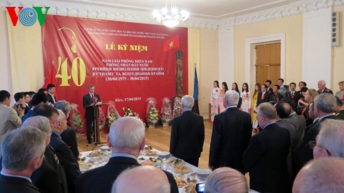 Lễ kỷ niệm diễn ra rất trang trọng nhưng cũng thật ấm cúng, thắm tình hữu nghị, đoàn kết Việt Nam – Ukraine. Sau lễ chào cờ của hai quốc gia, Đại sứ đặc mệnh toàn quyền Việt Nam tại Ukraine Nguyễn Minh Trí có bài diễn văn chào mừng, trong đó nhấn mạnh ý nghĩa to lớn của chiến thắng 30/4/1975 đối với toàn thể nhân dân Việt Nam.