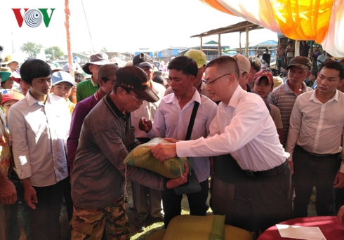 Nhân dịp Tết Nguyên đán Kỷ Hợi, Đại sứ Vũ Quang Minh và các thành viên trong đoàn đã trao quà chúc tết cho 1.000 hộ kiều bào nghèo tại điểm tạm cư thuộc phường Phsar Chhnang, thành phố Kampong Chhnang.