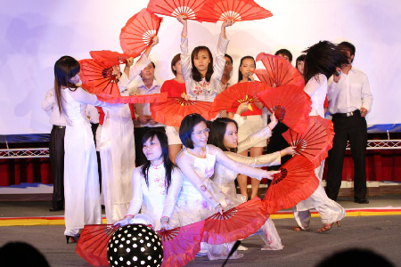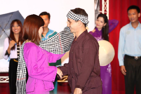 Tối 14/4, sân khấu của đêm khai mạc “Tuần văn hóa - Thể thao Việt Nam” 2012 đã bừng sáng trong niềm hân hoan của cộng đồng du học sinh, người Việt Nam vaf bạn bè quốc tế. Những người tổ chức chương trình đã gây ấn tượng mạnh với người xem bởi những tiết mục dàn dựng công phu, không kém phần chuyên nghiệp.