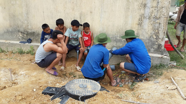 Sinh viên Việt tại Nga về nước tiến hành xây dựng công trình phụ cho giáo viên và học sinh ở điểm trường Sơn Trạch 2, Bố Trạch, Quảng Bình.