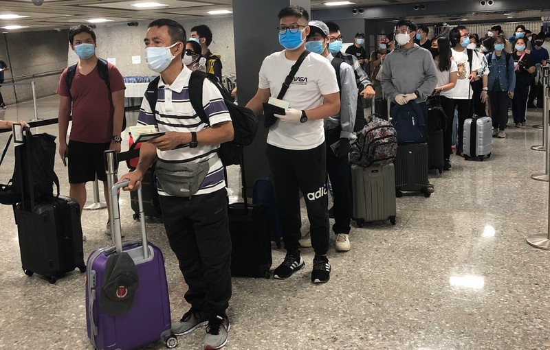 Tất cả hành khách từ Hoa Kỳ về đã được cách ly và kiểm tra y tế theo quy định khi máy bay hạ cánh xuống sân bay Vân Đồn. -Ảnh: VOV |