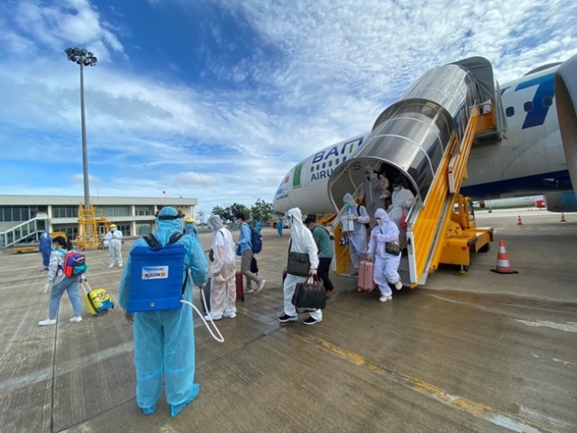 Ngay sau khi hạ cánh xuống sân bay quốc tế Cần Thơ, những người tham gia chuyến bay đã được giám sát y tế và cách ly tập trung theo đúng quy định.