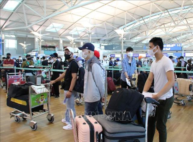 Công dân Việt Nam chờ làm thủ tục về nước tại sân bay ở Hàn Quốc. Ảnh: Mạnh Hùng/Pv TTXVN tại Hàn Quốc |