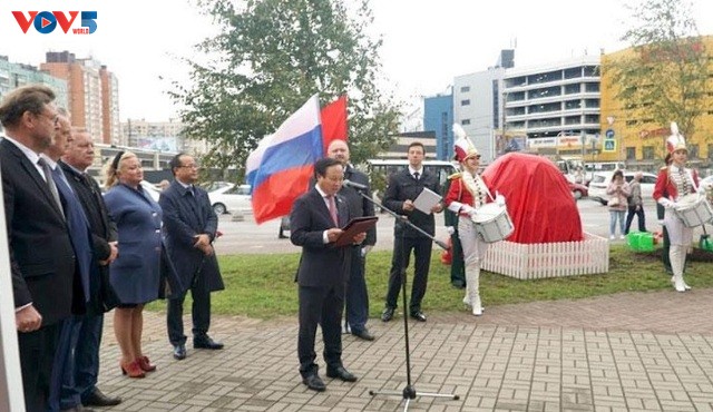 Ngày 8-10, tại thành phố Saint Petersburg, LB Nga, Đại sứ quán Việt Nam và chính quyền thành phố tổ chức lễ đặt phiến đá tại vị trí dự kiến dựng tượng Chủ tịch Hồ Chí Minh. Đây là bước khởi đầu thực thi dự án dựng tượng, được kỳ vọng trở thành biểu tượng mới cho mối quan hệ hữu nghị truyền thống giữa Việt Nam và LB Nga nói chung, và với thành phố Saint Petersburg nói riêng.