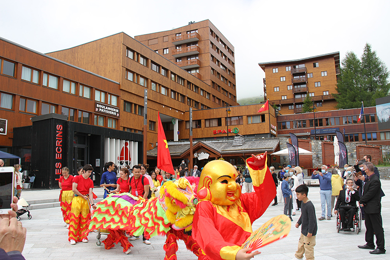 Quảng trường trung tâm thị trấn La Plagne sôi động với các màn trình diễn văn hóa Việt Nam - Ảnh: nhandan.vn |