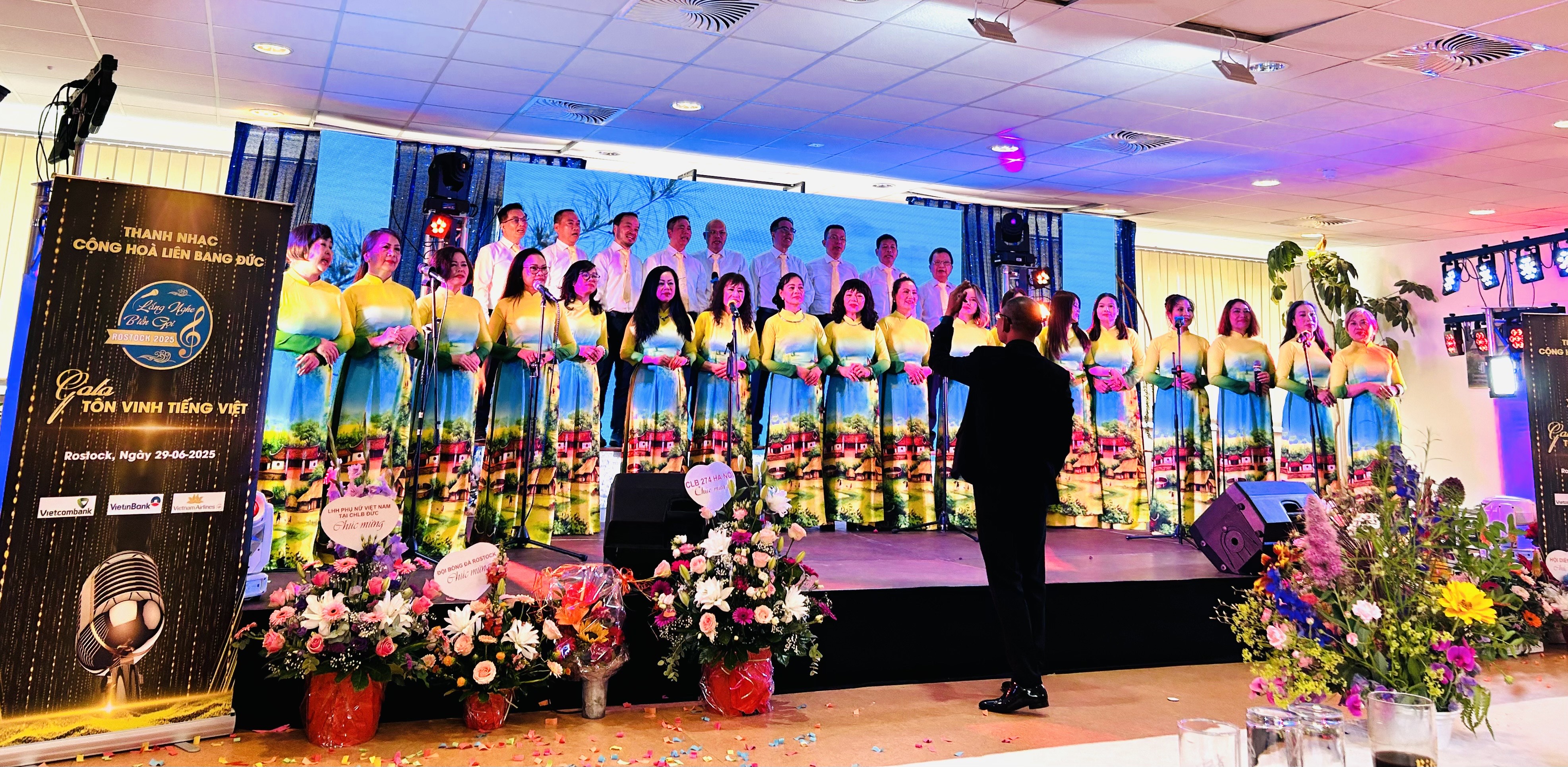 Cùng bên nhau và hát lên những giai điệu quê hương với cả trái tim mình, cuối tuần qua, hàng trăm người Việt tại nhiều thành phố của nước Đức và một số nước lân cận đã tụ họp trong Gala “Tôn vinh tiếng Việt 2025 - Lắng nghe biển gọi” tại thành phố biển Rostock.