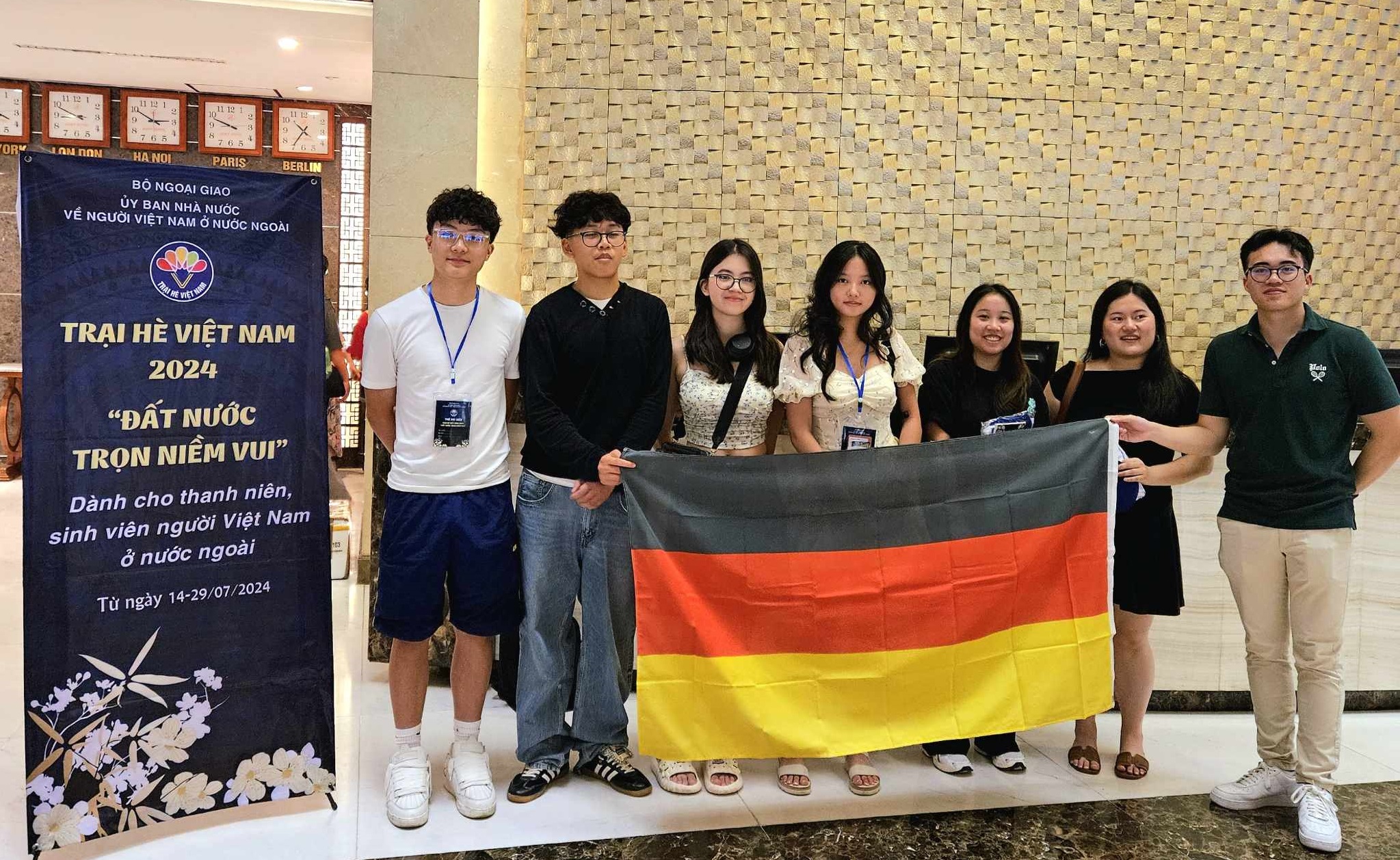 Những thành viên tiêu biểu của đoàn Đức hội tụ tại Hà Nội, sẵn sàng cho Trại hè Việt Nam 2024. Bạn Nguyễn Thảo Ly (thứ ba từ phải sang) vui mừng được tham gia hành trình năm nay. |