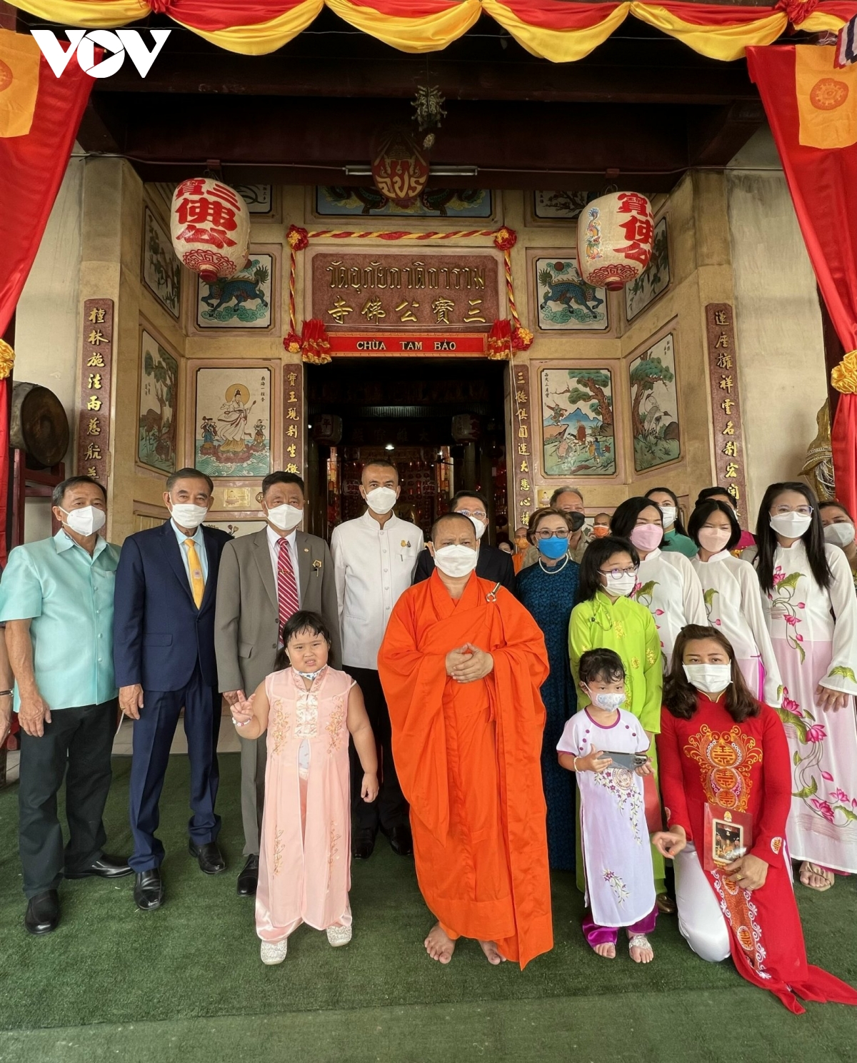 Hòa thượng Thích Thiện Khai, trụ trì chùa Tam Bảo Công cho biết: "Ngôi chùa này có tên gọi là Chùa Tam Bảo, được xây dựng vào năm 2449 (theo lịch Phật giáo), từ đời vua Rama thứ V, tính đến nay đã được 116 năm. Chùa mang nhiều nét của Phật giáo Trung Hoa nhưng phát triển theo hệ phái Phật giáo Việt tông. Người Thái, người Việt và người Hoa cùng đến cúng lễ thờ phụng tại ngôi chùa này, thể hiện nét đẹp bao trùm của Đạo Phật, nơi mọi người bất kể từ nước nào, đều có thể cùng chia sẻ niềm tin tôn giáo. Tôi là Hòa thượng Thích Thiện Khai, là người Thái, và đang trụ trì chùa này”.