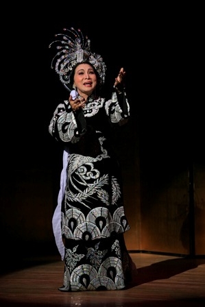 | Nghệ sĩ Bạch Tuyết trong vai Thái hậu Dương Vân Nga - một trích đoạn biểu diễn trong chương trình |