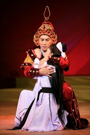 | Nghệ sĩ Kim Tử Long và Thoại Mỹ trong trích đoạn vở Lục Vân Tiên và Kiều Nguyệt Nga |