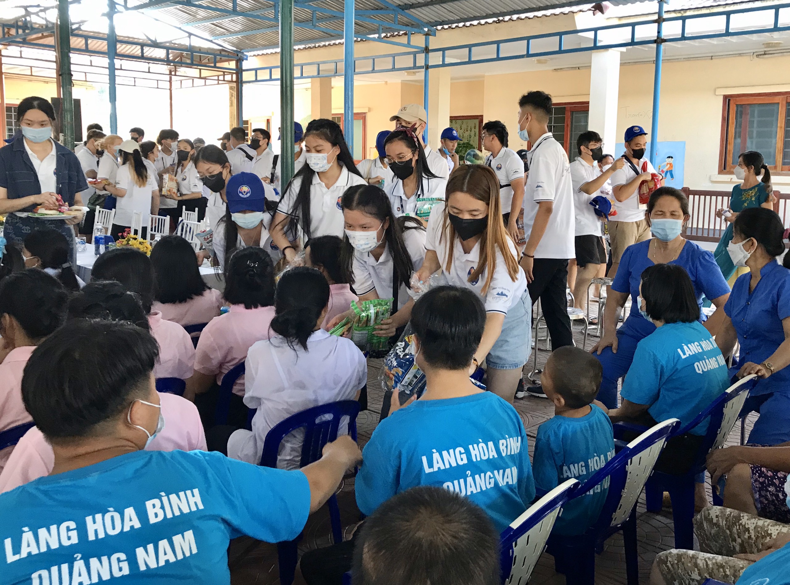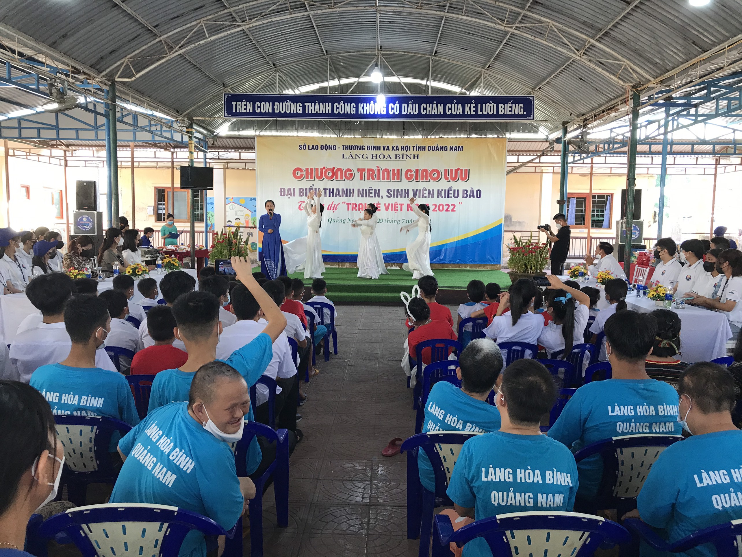 Chiều cùng ngày, đoàn Trại hè Việt Nam 2022 thăm làng Hoà Bình, Quảng Nam. Làng thực hiện chức năng tiếp nhận, nuôi dưỡng và phục hồi chức năng tập trung cho các nhóm đối tượng bảo trợ xã hội; tiếp nhận và nuôi dưỡng tạm thời các đối tượng cần chăm sóc khẩn cấp; kết nối và cung cấp dịch vụ xã hội cho các đối tượng, chuyển đối tượng trở về gia đình, hòa nhập cộng đồng…
