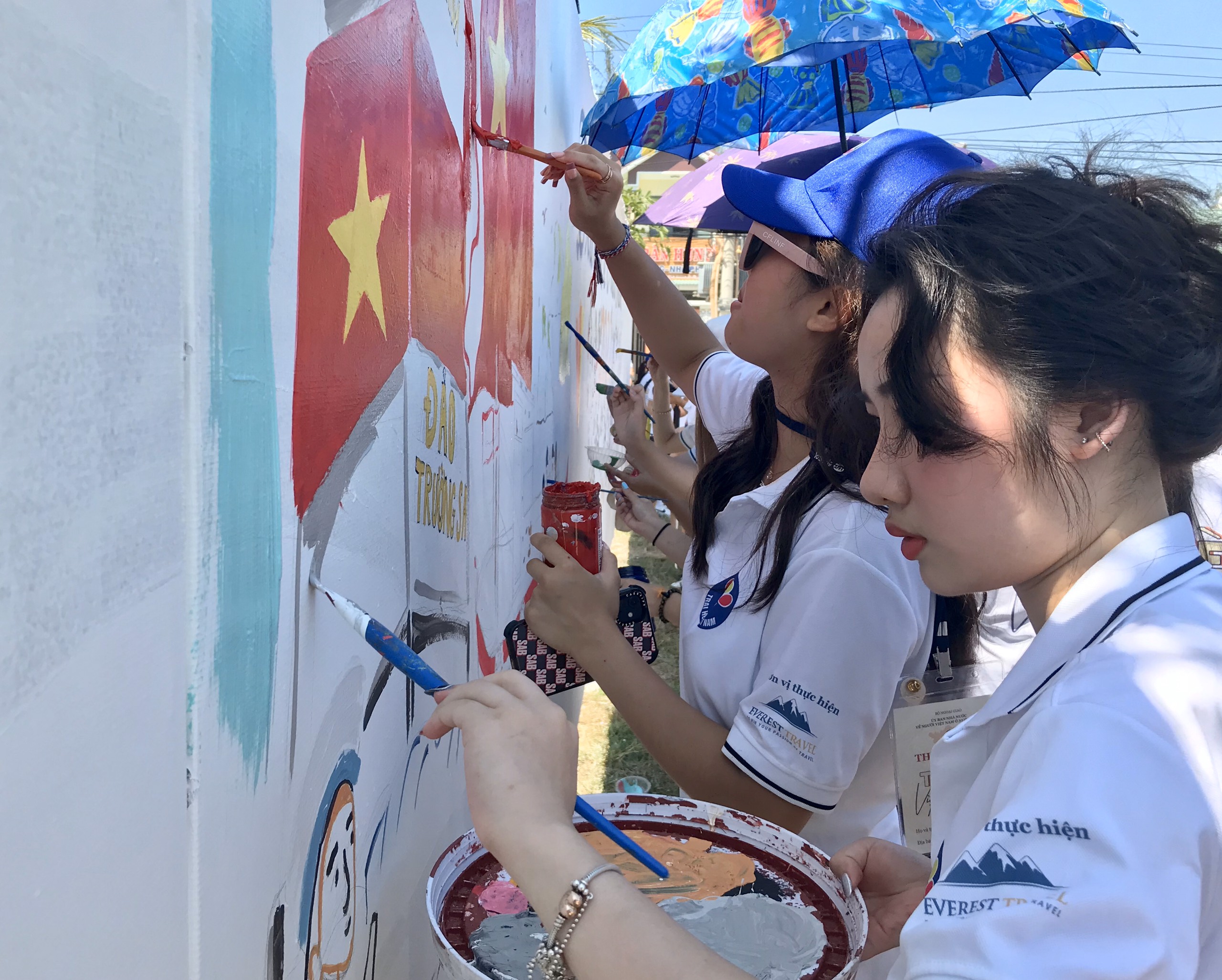 Tại đây, các thanh niên kiều bào tham gia trải nghiệm vẽ tranh trên bức tường lớn có chiều cao 2,5m, chiều dài 20m. Các bạn trẻ kiều bào thể hiện tình yêu biển, đảo bằng những nét vẽ về chiến sĩ hải quân chắc tay súng, bảo vệ chủ quyền thiêng liêng của Tổ quốc; ý thức trách nhiệm của tuổi trẻ kiều bào trong việc tuyên truyền bảo vệ chủ quyền biển đảo Việt Nam…