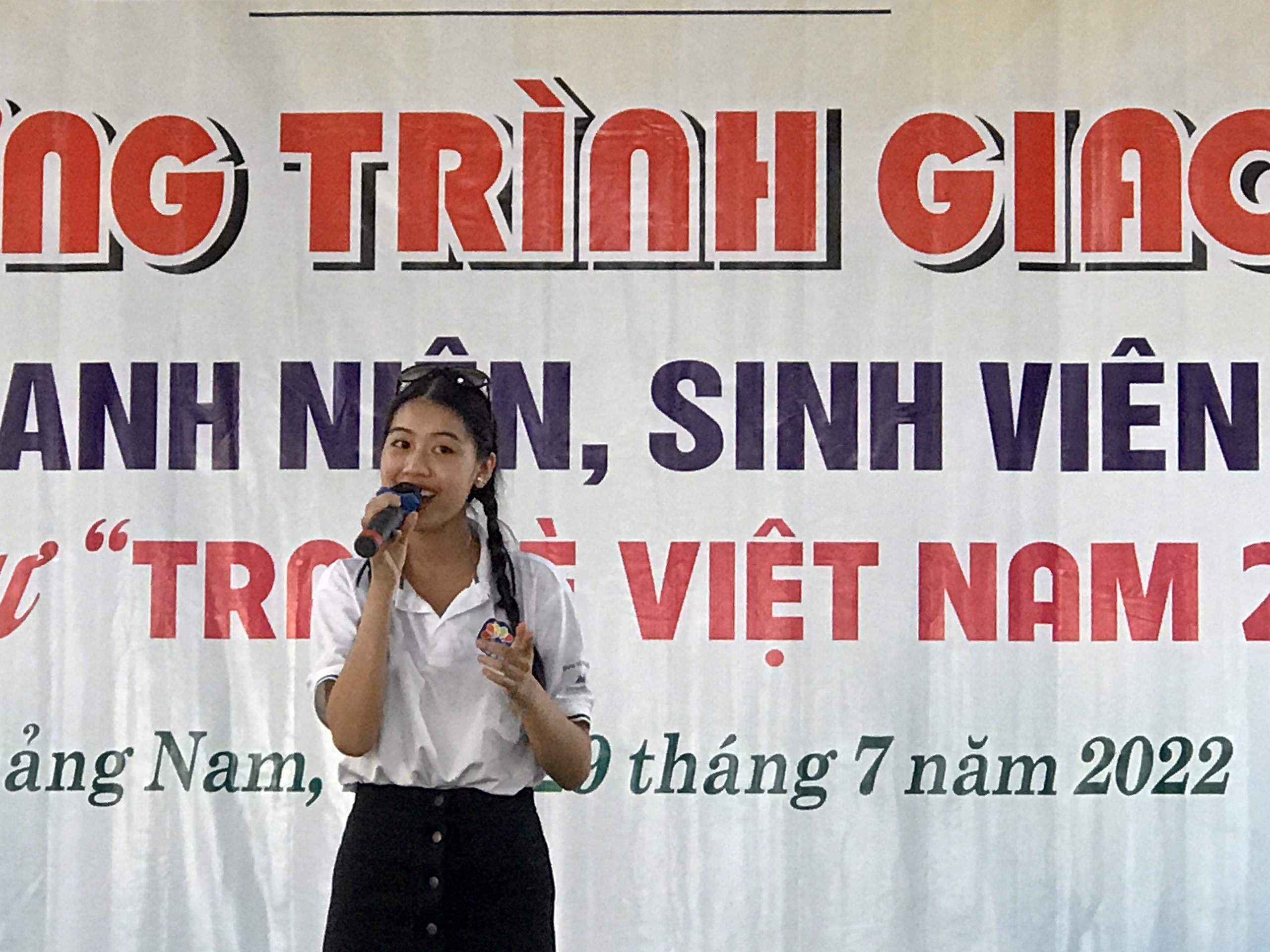Hoàng Thảo Sandra, kiều bào Cộng hoà Séc, trình bày một ca khúc tặng các cụ và các em nhỏ làng Hoà Bình, Quảng Nam. |