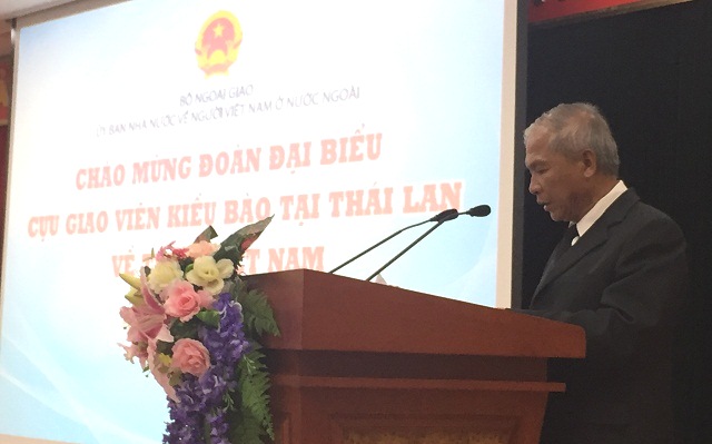 Ông Lê Văn Dần, cựu giáo viên kiều bào, cám ơn Ủy ban Nhà nước về người Việt Nam ở nước ngoài đã tổ chức chuyến về thăm quê hương lần này: “Tôi rất mừng phấn khởi được Đảng và Chính phủ nước cộng hòa xã hội chủ nghĩa Việt Nam, Ủy ban Nhà nước về người Việt Nam ở nước ngoài đã quan tâm tạo điều kiện cho thầy cô cựu giáo viên Thái Lan về thăm quê hương đất nước. Tôi nguyện cùng các thầy cô cựu giáo viên góp phần xây dựng một nước Việt Nam độc lập, tự cường, giàu mạnh sánh vai với các dân tộc trên thế giới, theo lời dạy của Chủ tịch Hồ Chí Minh muôn vàn kính yêu”.