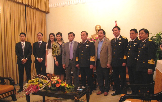 | Ông Johnathan Hạnh Nguyễn cùng gia đình, đại diện Bộ Ngoại giao và Bộ Tư lệnh hải quân chụp ảnh lưu niệm. |