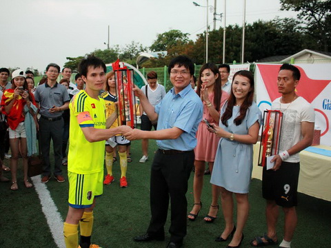 | Trao giải cho đội Kyeong-ju vô địch môn bóng đá nam. Ảnh theo thethaovanhoa.vn |