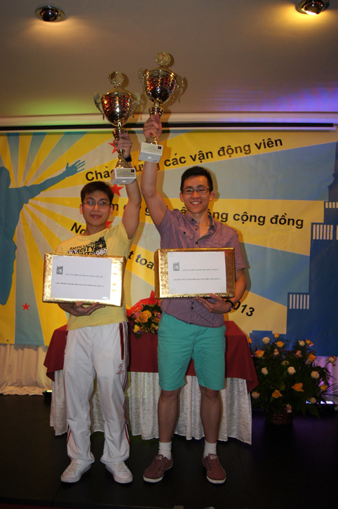 Các ông Lương Quang Chỉnh, bí thư thứ nhất phụ trách công tác Cộng đồng và Lê Thiết Hùng, chủ tịch Hội NVNTBL đã đến dự, tặng quà và chúc mừng các vận động viên.