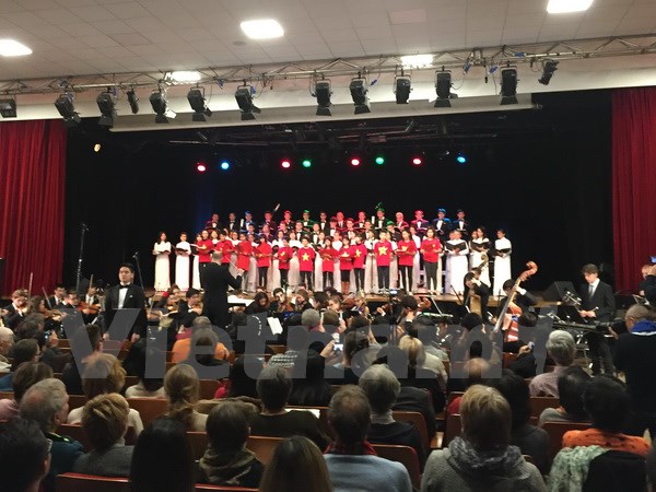 | Hợp ca Quê hương tại Pháp và dàn nhạc Nhạc viện thành phố Rouen (thủ phủ vùng Normandie của Pháp). (Ảnh: Việt Sơn/Vietnam+) |