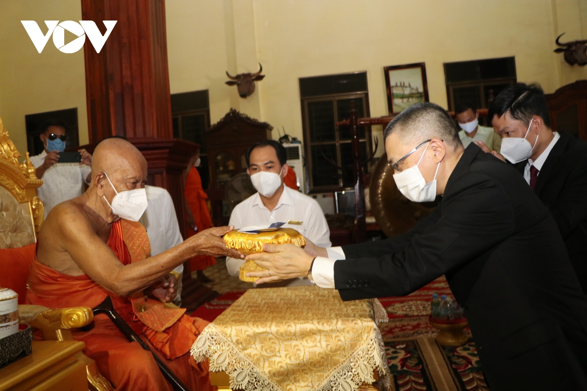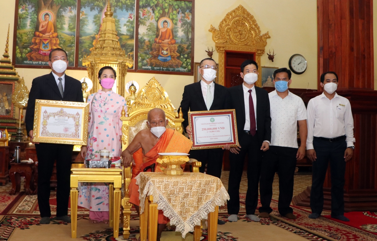 Tại buổi lễ, Đại sứ Việt Nam tại Campuchia Vũ Quang Minh đã chuyển lời thăm hỏi chân tình của Hội đồng Trị sự Giáo hội Phật giáo Việt Nam tới Đại tăng thống Vua sư Samdech Tep Vong và chư tăng Phật giáo Vương quốc Campuchia, đồng thời trao tặng số tiền trị giá 250 triệu đồng của Giáo hội Phật giáo Việt Nam và Giáo hội Phật giáo Việt Nam thành phố Hồ Chí Minh tới Đại tăng thống và chư tăng Phật giáo Campuchia.