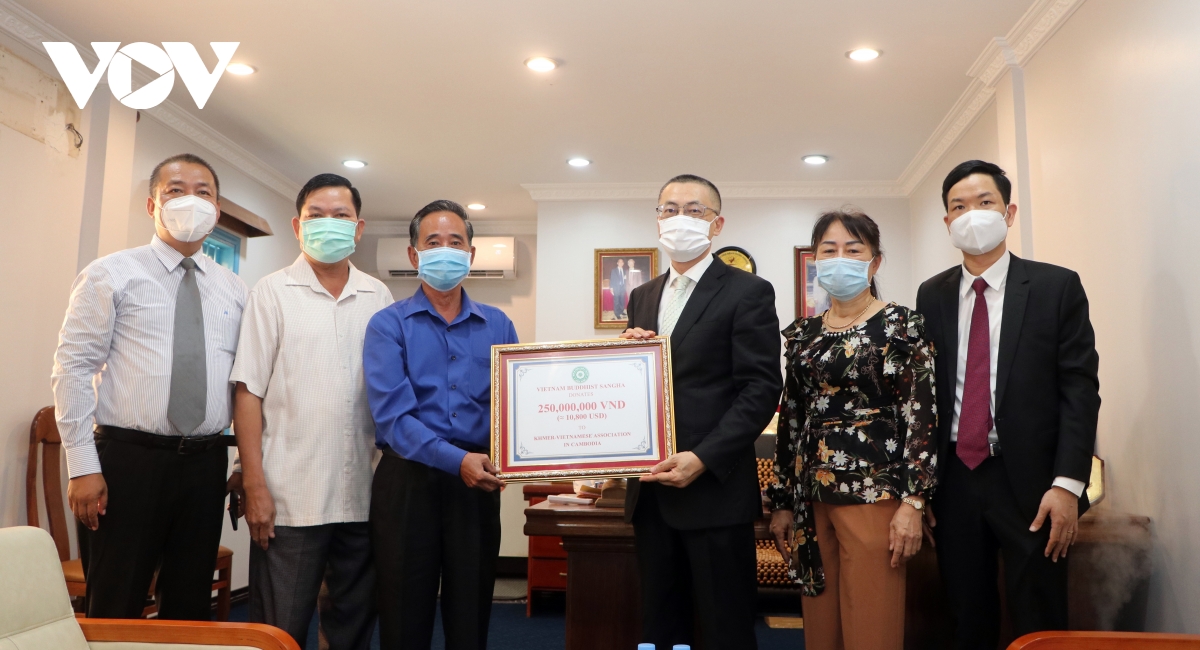 Cũng trong ngày hôm nay, Ban lãnh đạo Hội Khmer – Việt Nam đã tiếp nhận số tiền trị giá 250 triệu đồng là quà của Giáo hội Phật giáo Việt Nam và Giáo hội Phật giáo Việt Nam thành phố Hồ Chí Minh giúp đỡ bà con Việt kiều tại Campuchia gặp khó khăn do dịch bệnh Covid-19.
