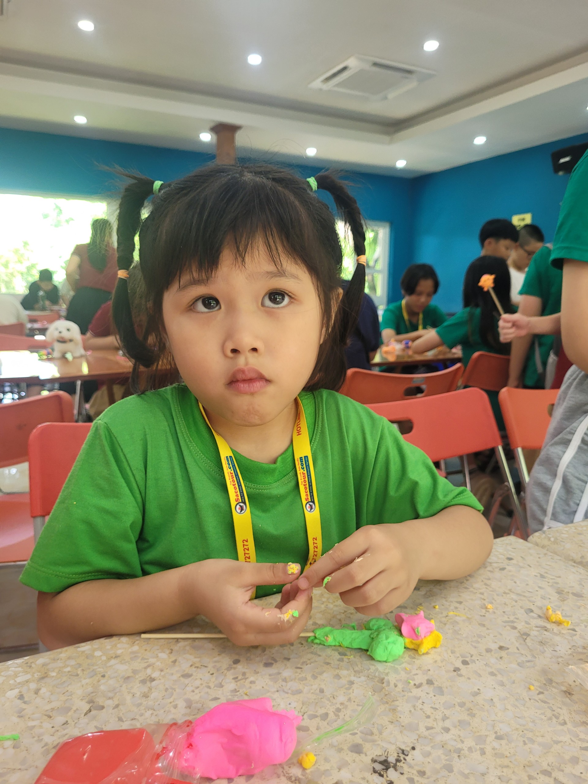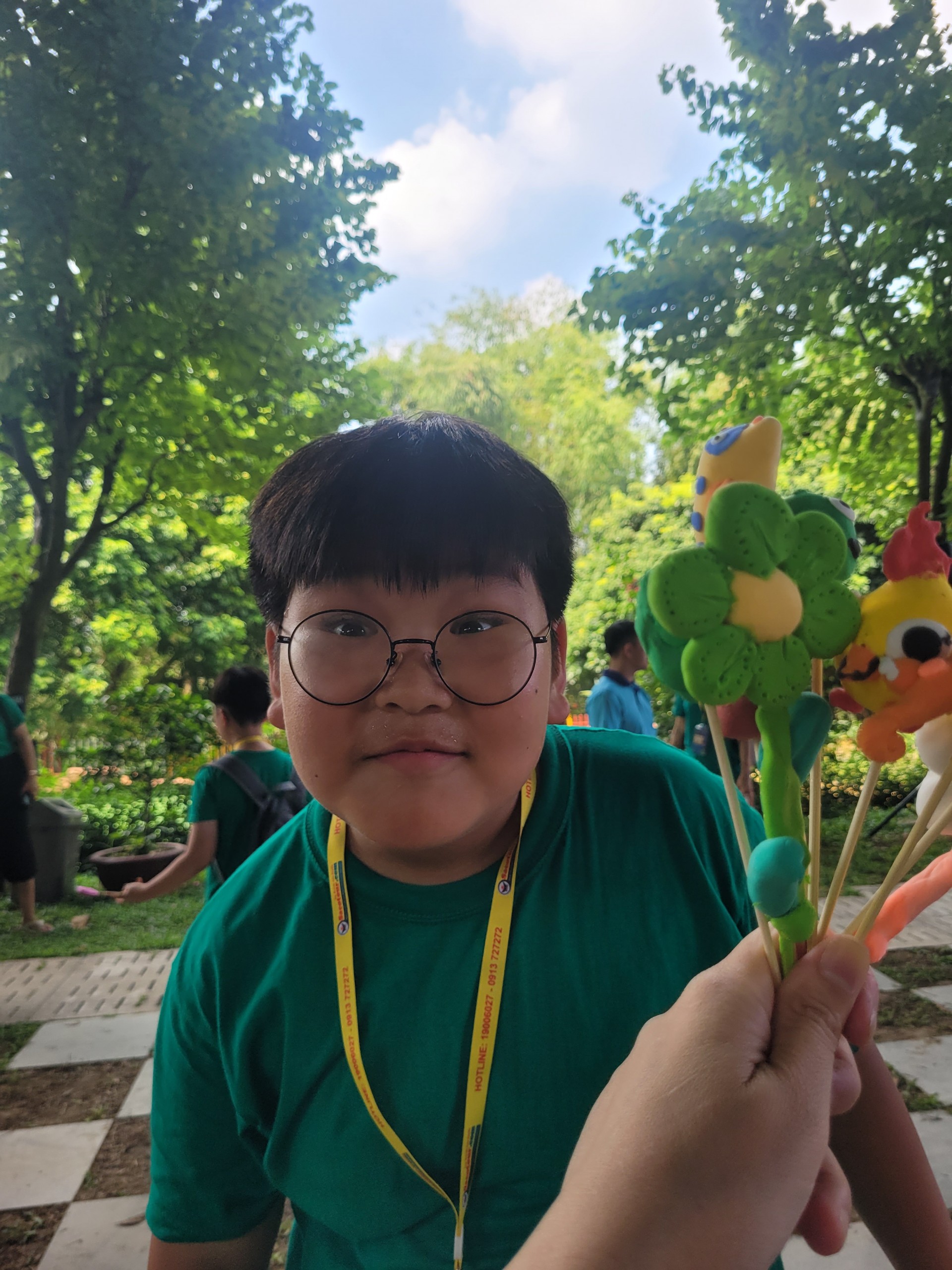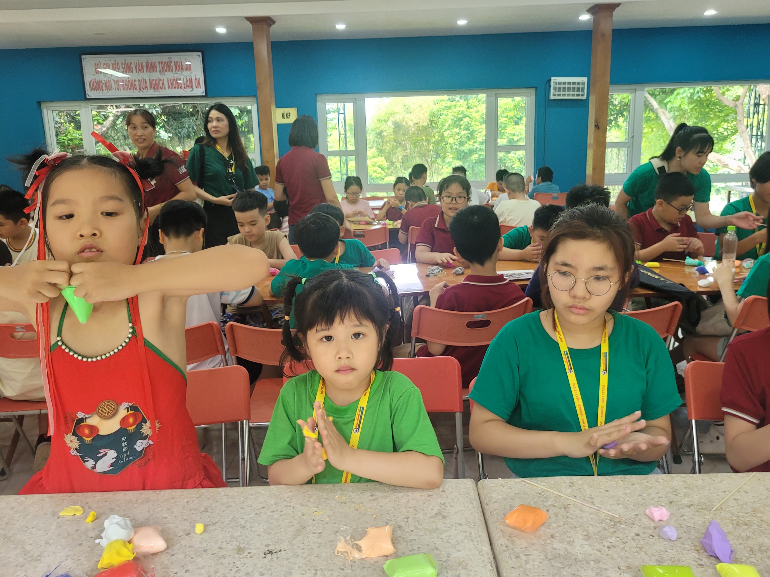 Hoạt động trải nghiệm mỹ thuật tạo hình nặn tò he có lẽ gây được sự thích thú nhất đối với các bạn nhỏ kiều bào Hàn Quốc. Em Kim Min Ánh thích thú khoe: “Nay con làm được quả dâu tây rất đẹp. Con thích hoạt động làm tò he nhất bởi con được chơi với sắc màu và nặn được thoải mái những hình con thích. Con vui vì được tham gia những tham gia trò chơi hôm nay. Lúc nấu cơm niêu,con ở nhóm số 7”.