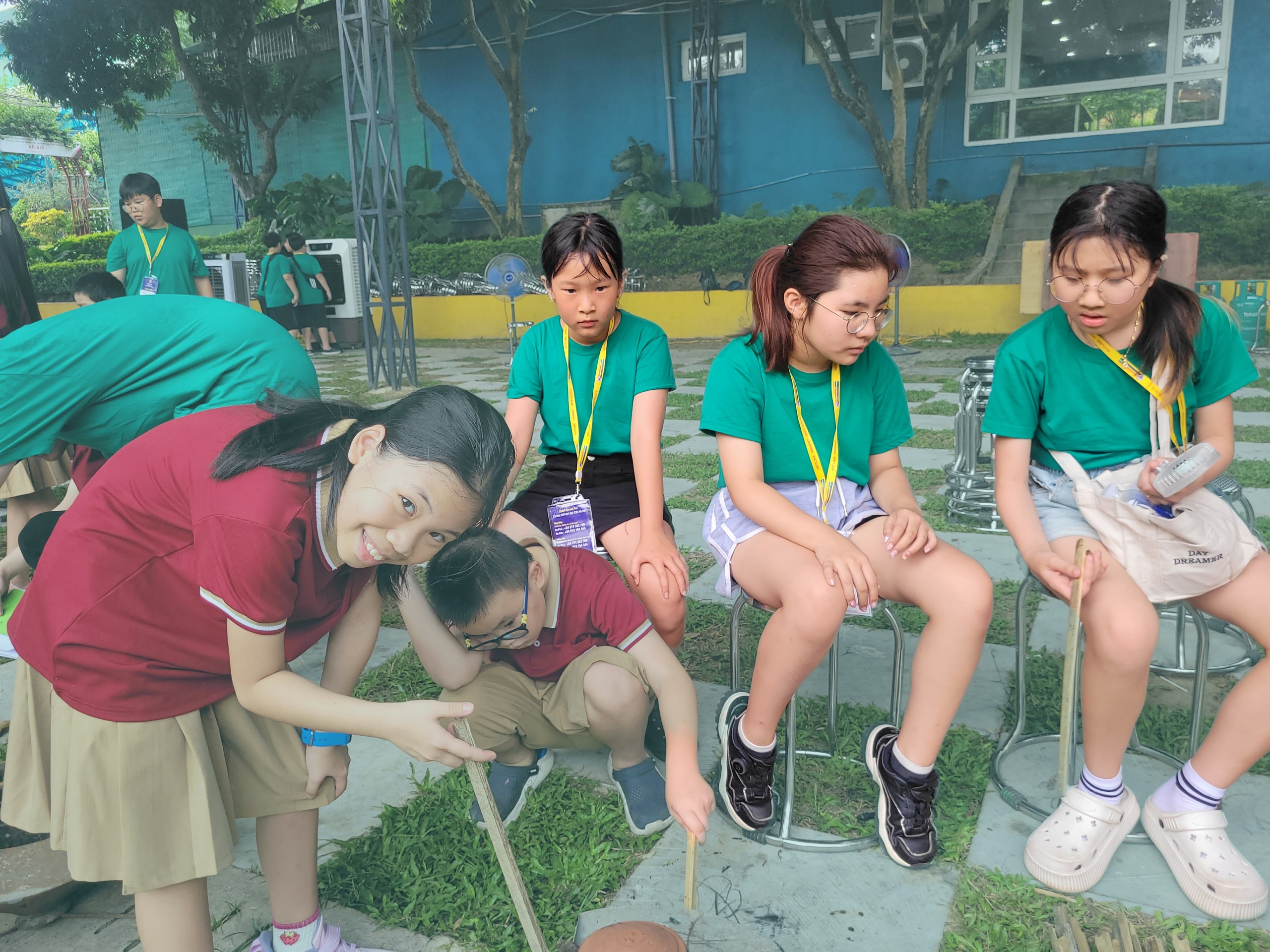 Chào đón đoàn là những ánh mắt,nụ cười thân thiện của các thầy cô và học sinh trường tiểu học Nguyễn Bỉnh Khiêm, Hà Nội. Những giây phút bỡ ngỡ ban đầu qua nhanh khi các em được phân nhóm để tham gia cuộc thi nấu cơm niêu.