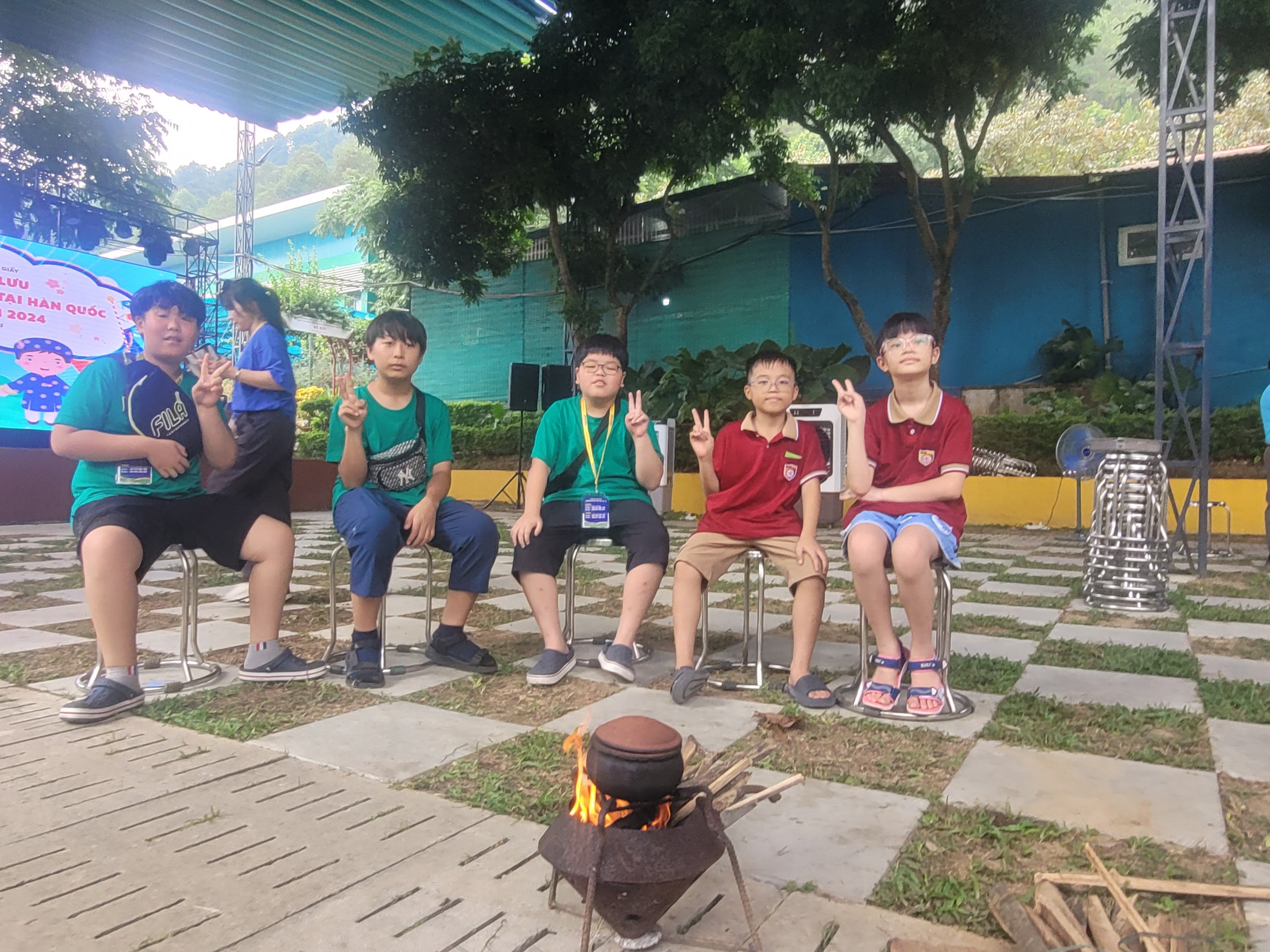 Với các bạn kiều bào Việt Nam tại Hàn Quốc thì đây là sự tò mò thích thú, bởi lần đầu tiên các em biết thế nào là “cơm niêu”- một phương pháp nấu cơm truyền thống của người Việt xưa. Sau đó, 1 nhóm 5 em phải xoay xở phân công từ việc vo gạo, nhóm lửa, canh bếp cho đến lúc cơm chín. Không khí trên sân thật rộn ràng và sôi động.