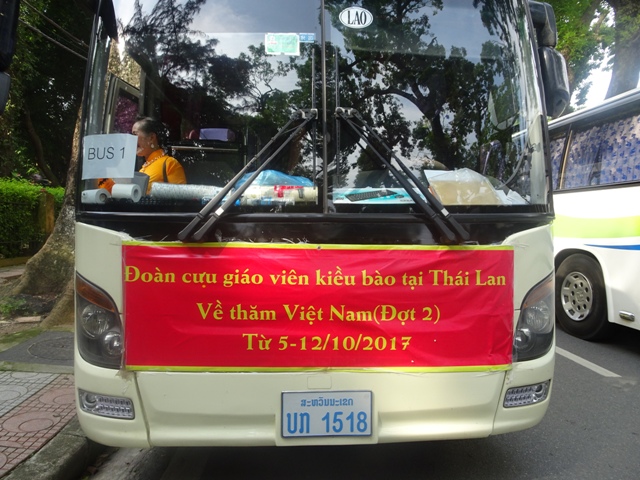 Xe chở đoàn cựu giáo viên từ Thái Lan về Việt Nam, xuất phát từ tỉnh Nakhon Phanom hôm 5/10
