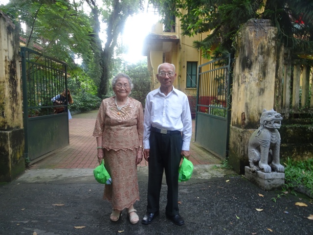 Hai giáo viên cao tuổi nhất đoàn, vợ chồng bác Nguyễn Văn Chính, Vũ Thị Nhuần ở tỉnh Udon