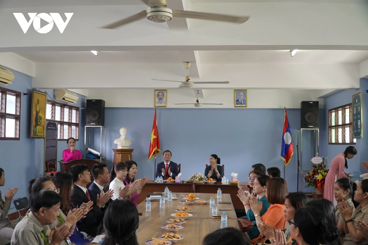 Đồng thời, mong muốn các thầy cô khắc phục khó khăn, có những sáng kiến, đổi mới trong phương pháp dạy và học để nâng cao chất lượng cũng như cần nhận thức sâu sắc về sứ mệnh và trọng trách lớn lao của mình trong việc dạy và học tiếng Việt để các em học sinh bên cạnh tiếng Lào, cũng phải nói được tiếng Việt, hiểu được về lịch sử, văn hóa Việt Nam và các em học sinh gốc Việt luôn nhớ về quê hương, Tổ quốc Việt Nam.