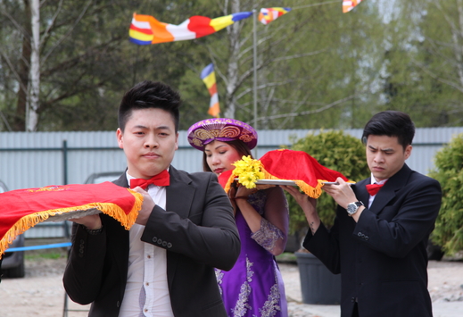 Trong phần nghi lễ hành chính, ông Lê Văn Mừng, phó chủ tịch Trung tâm Phật giáo Việt Nam tại Ba Lan đã nhắc lại ý nghĩa của ngày Giỗ Tổ, một nghi lễ thờ cúng đã được UNESCO công nhận là di sản văn hóa phi vật thể của nhân loại.