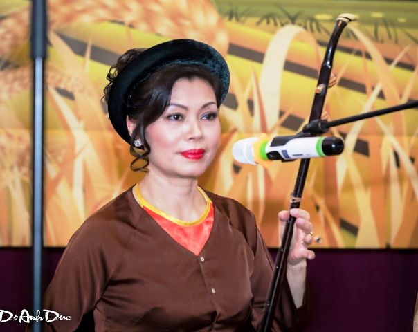 Bà Hoàng Thị Dư - Chủ tịch Hội yêu nghệ thuật truyền thống Việt Nam tại CHLB Đức trong một tiết mục hát xẩm - Ảnh: Đỗ Anh Đức |