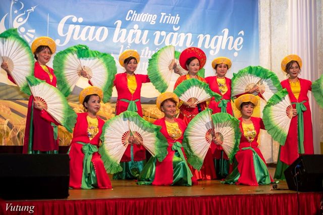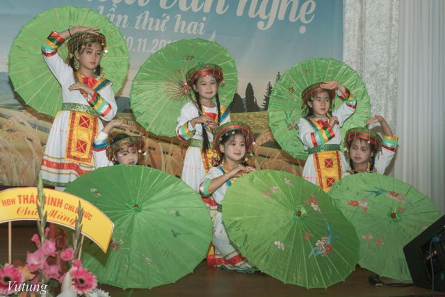 Các sắc màu trang phục truyền thống của các dân tộc Việt Nam trên sân khấu cộng đồng tại CHLB Đức - Ảnh: Vũ Tùng |