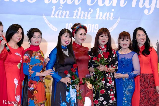 Tà áo dài là trang phục không thể thiếu trong các sự kiện của bà con nơi xa xứ - Ảnh: Vũ Tùng |