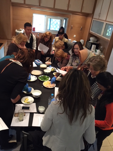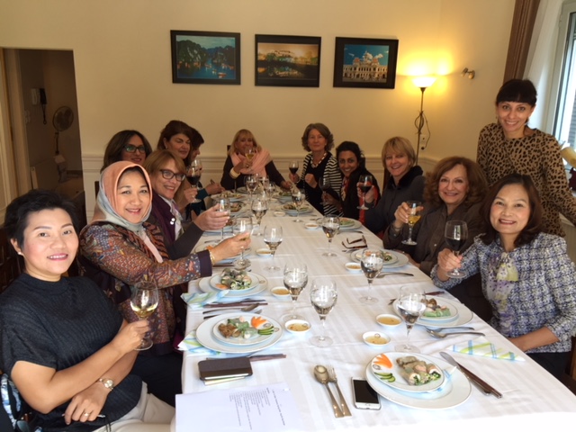 Đại sứ Trần Thị Hà Phương cùng các chị em, phu nhân của Đại sứ quán đã giới thiệu về nguyên liệu, gia vị đặc trưng, công thức và cách thức chế biến món nem cuốn, nem rán, phở, chè hạt sen – long nhãn… , những món ăn truyền thống có từ lâu đời tại Việt Nam. Sau khi nghe giới thiệu, các khách tham dự đã tự tay chế biến các món ăn và đặc biệt thích thú khi mình đã thành công nấu được món ăn Việt Nam. Nhiều phu nhân tâm sự sẽ về nhà nấu món ăn Việt vì chồng con họ rất yêu thích ẩm thực Việt Nam.
