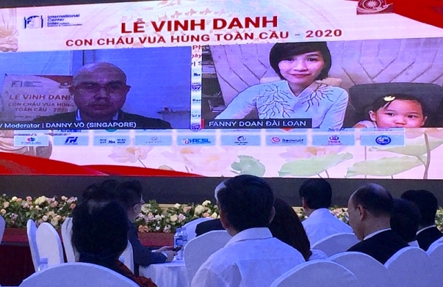 Chương trình Lễ vinh danh con cháu Vua Hùng toàn cầu năm 2020 được kết nối online với nhiều điểm cầu. - Ảnh: Ban tổ chức. |