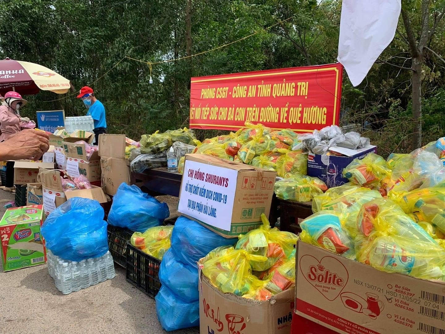 Sáng 1/8, 200 bánh chưng, 7 thùng lương khô, hàng trăm chai nước và sữa uống liền đã được người thân của chị Hồng Shuranys chuyển tới trạm kiểm dịch huyện Hải Lăng, Quảng Trị. Số quà này sau đó sẽ được chia vào các túi nhỏ để gửi tới những người đi xe máy từ Thành phố Hồ Chí Minh về quê.