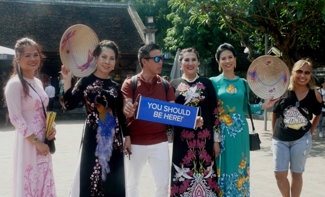 Du khách quốc tế thích thú chụp ảnh lưu niệm với chị em kiều bào |