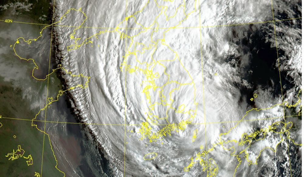 Hình ảnh bão Haishen chuyển động dọc bán đảo Triều Tiên ngày 7/9 - Nguồn: DPA |