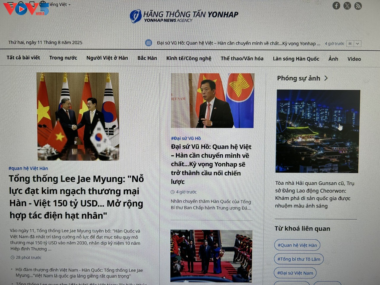 Hãng thống tấn Yonhap của Hàn Quốc ngày 11/8 chính thức cung cấp các tin tức hàng ngày bằng tiếng Việt cho cộng đồng Việt Nam tại Hàn Quốc.