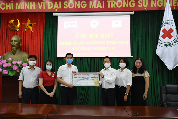 Ngày 4/10, tại Trung ương Hội chữ Thập đỏ Việt Nam đã diễn ra lễ tiếp nhận tiền quyên góp 200.000 USD của Hệ thống Lee’s Sandwiches Hoa Kỳ hỗ trợ người dân, lực lượng tuyến đầu chống dịch bệnh Covid-19 tại TP. Hồ Chí Minh do sự kết nối của Ủy ban Nhà nước về người Việt Nam ở nước ngoài