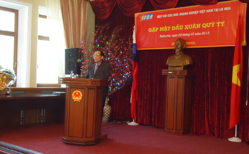| Đại sứ đặc mệnh toàn quyền Việt Nam tại LB Nga - Phạm Xuân Sơn phát biểu tại buổi gặp mặt đầu xuân |