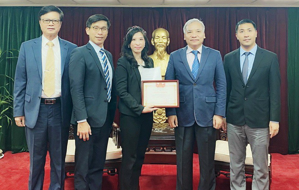Văn phòng Kinh tế văn hóa Việt Nam tại Đài Bắc khen thưởng với những thành tích đóng góp của bà Ngô Phẩm Trân. |